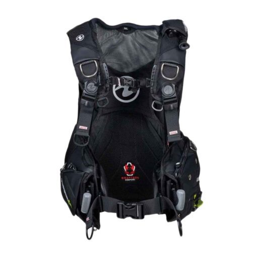 - The Wrapture harness system – An ultra-thin inner harness that fixes the BCD snug to the body to prevent riding up in the water while also distributing weight evenly by holding the tank closer to your centre of gravity so you can stand and walk upright with ease.