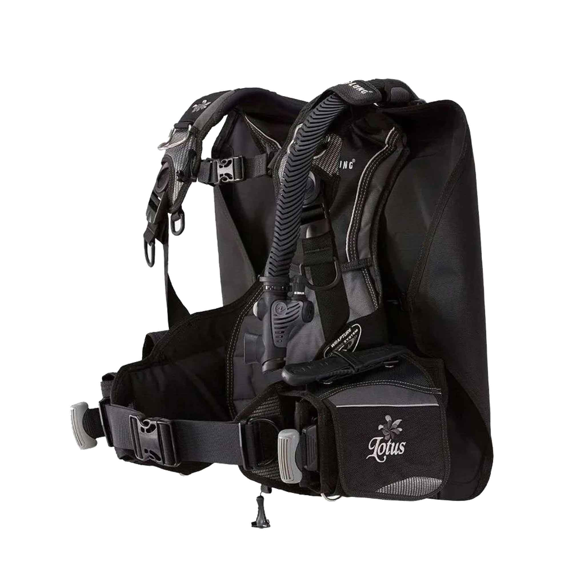 The Lotus is a women’s back inflation BCD featuring our integrated Wrapture harness system. Its specially curved shoulder straps and side lobes hug the female body’s contours for a perfect fit. It also includes the SureLock II mechanical weight system.