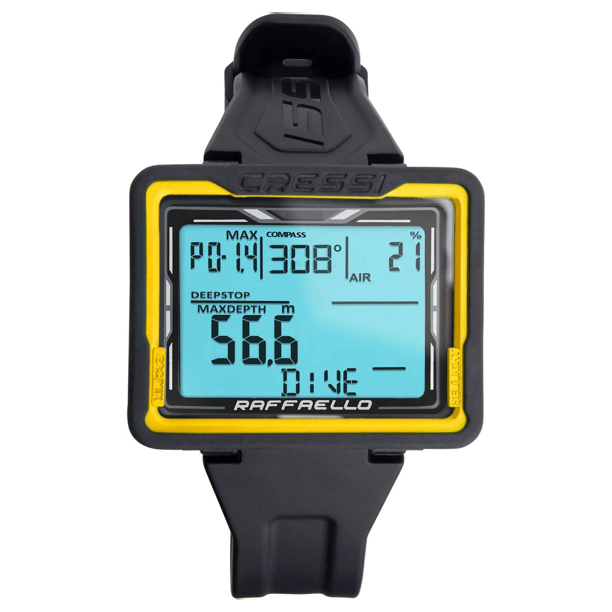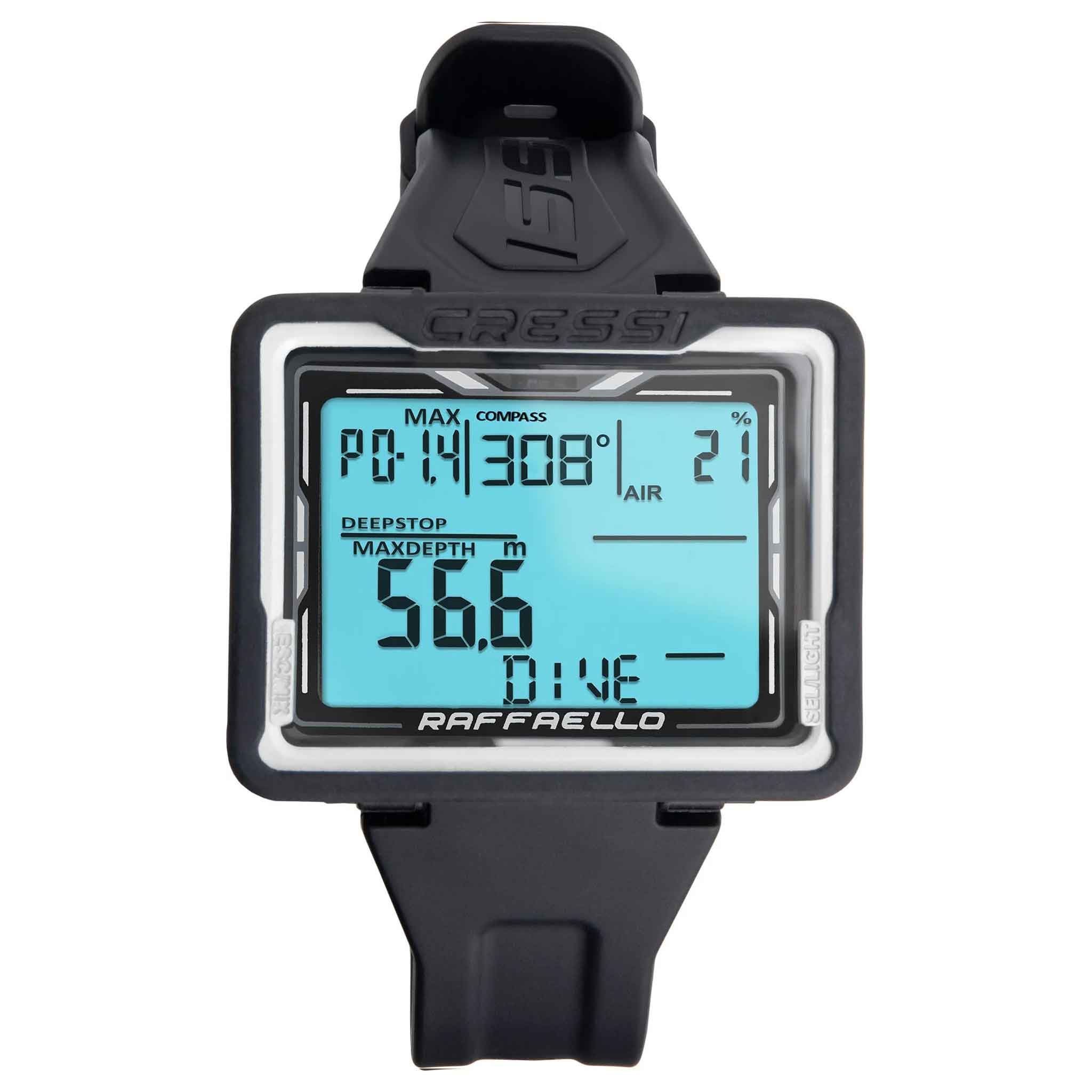 The Cressi Raffaello Dive Computer is a diving computer with a flat, large display. It is thought to give the diver the maximum data readability. Despite its thinness and lightness, it is very resistant and robust. The body of Raffaello reinforced material through micro-structured nano charges.