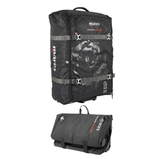 Revitalize your dive travel experience with the Mares Cruise Backpack Roller Back Pack 140L, now eco-friendly in 100% r-PET. This 140-liter bag boasts an easy-folding design, allowing it to be stowed effortlessly. The large sturdy wheels ensure convenient mobility, while features like the adjustable, padded shoulder straps and air mesh handle provide comfort. Practical elements, including the external fin pocket, compression straps and internal zipper, enhance functionality. The bag’s light weight and air travel optimization make it perfect for efficient air travel.