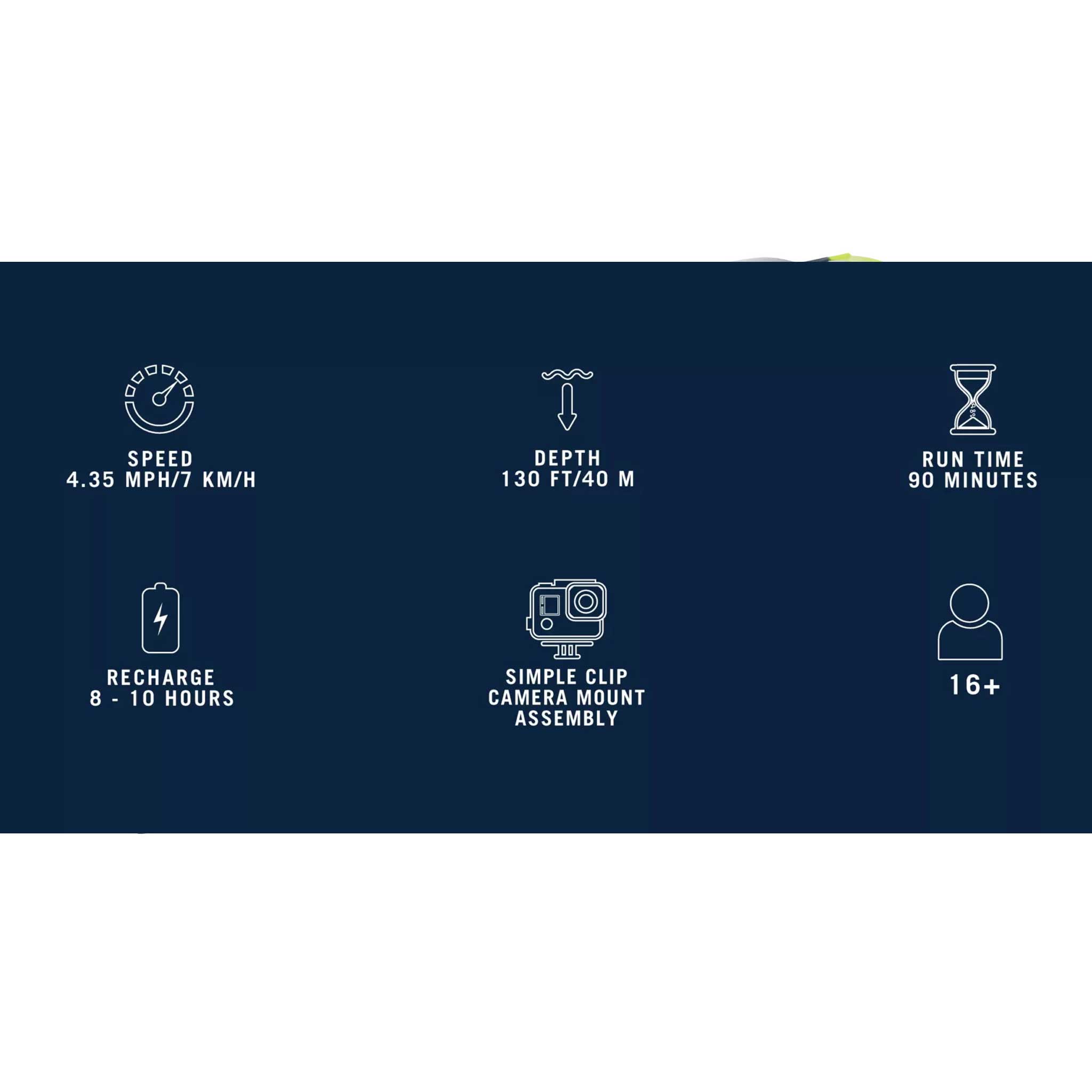 Glide underwater at a maximum speed of up to 4.3 mph (7 km/h) with 3 gears to choose from to cruise at different paces.