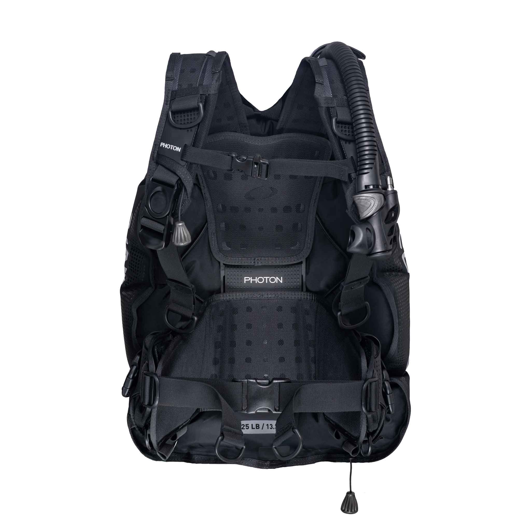 Photon’s compact back-inflation wing and lightweight backplate design makes packing a breeze, reduces drag underwater and effortlessly improves horizontal trim underwater.