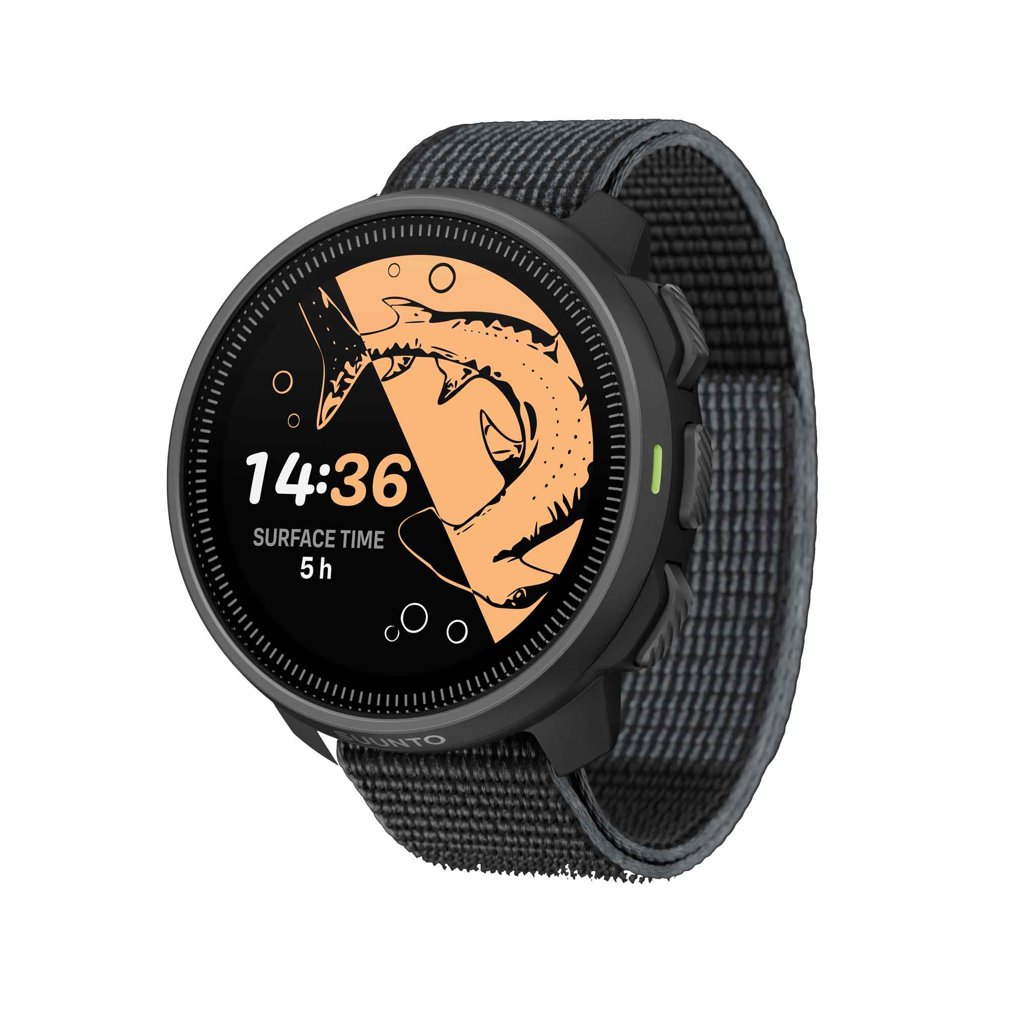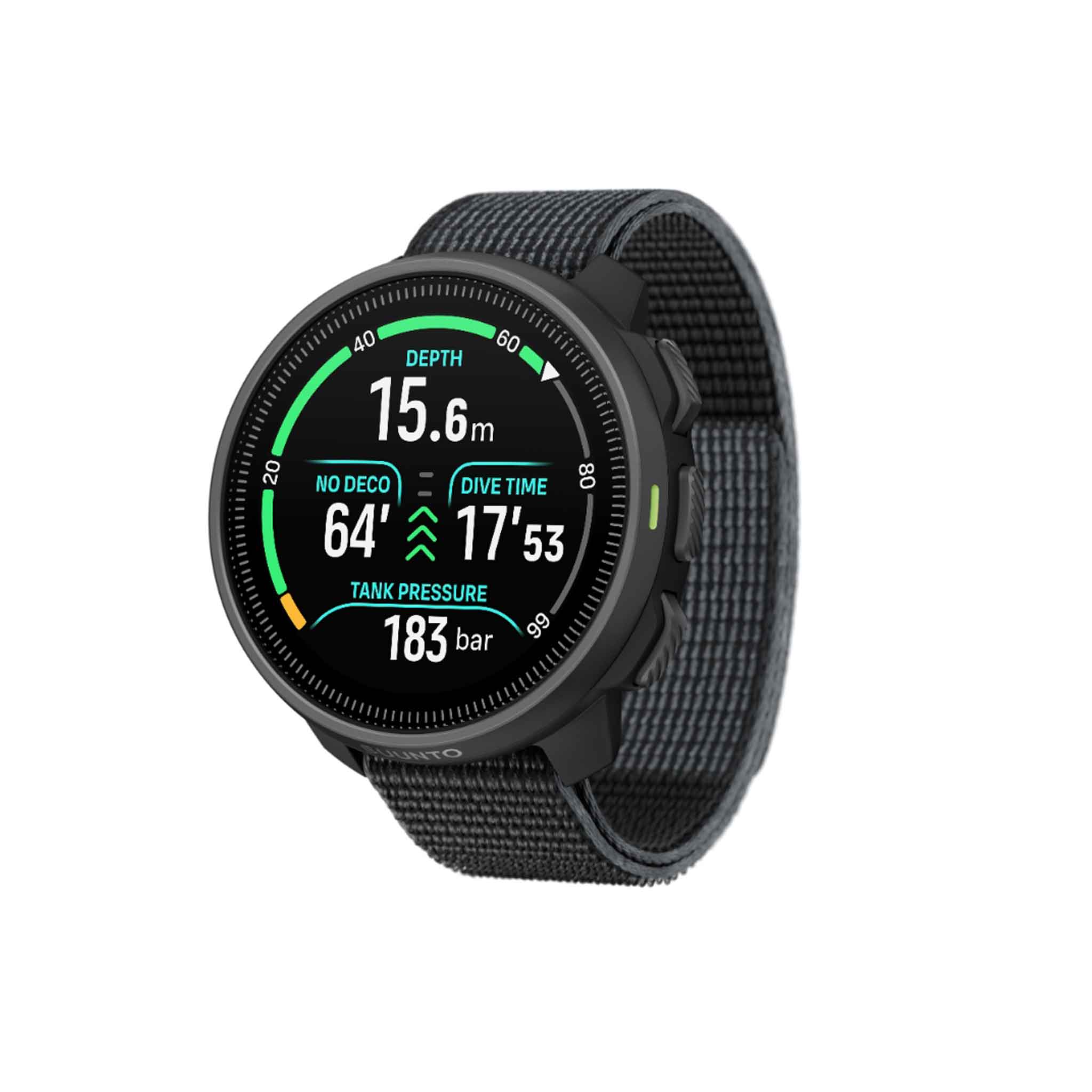 Its durable, pressure-resistant build and bright AMOLED display ensure clear visibility and confidence on each dive. The new elastic textile strap offers superior comfort and flexibility, adapting to every exposure suit and diving condition.